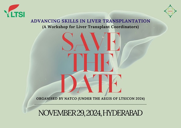 Network and Alliance of Transplant Coordinators (NATCO) is excited to announce its first workshop for Liver Transplant Coordinators - “Advancing Skills in Liver Transplantation” - organised by NATCO (Under the aegis of LTSICON 2024) on November 29, 2024, Hyderabad.